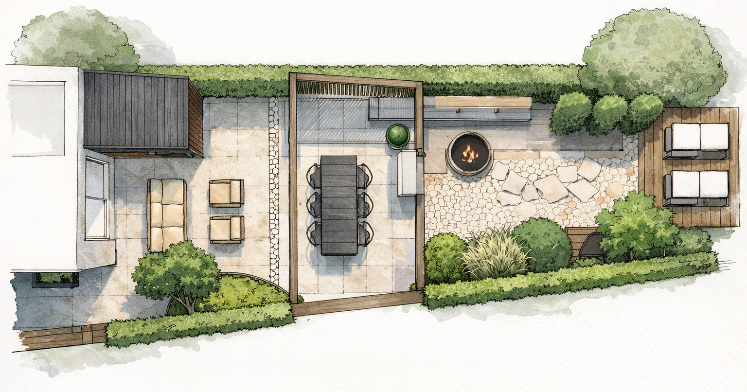 De tuin is vandaag de dag een volwaardige verlenging van de woonkamer. Een buitenruimte waarin sfeer, comfort en functionaliteit samenkomen en waar binnen en buiten naadloos in elkaar overlopen. Door materialen, kleuren en lijnen zorgvuldig op elkaar af te stemmen, ontstaat een harmonieus geheel dat rust en samenhang uitstraalt.
